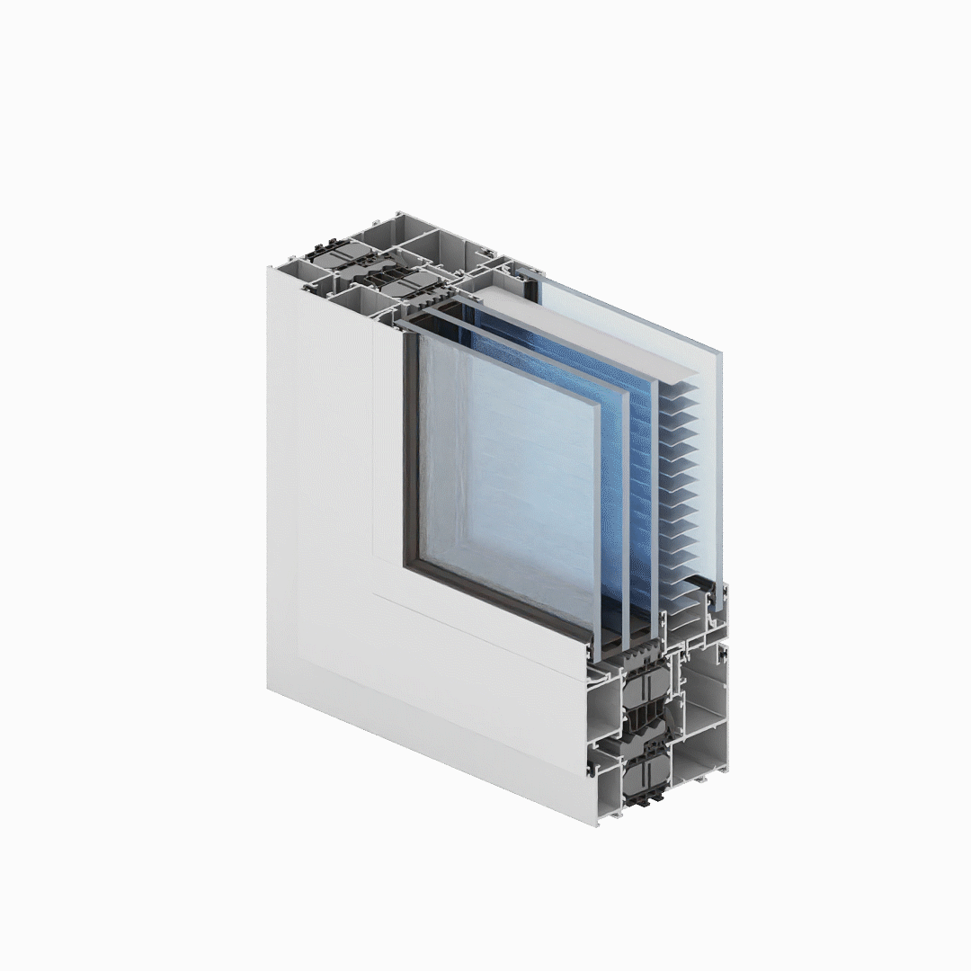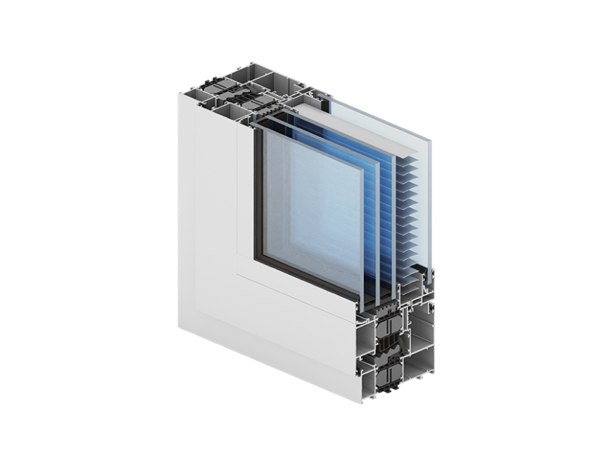 - konstrukce systému rozšířená o možnost integrace vnitřní žaluzie mezi hlavním sklem a přídavným vnějším sklem